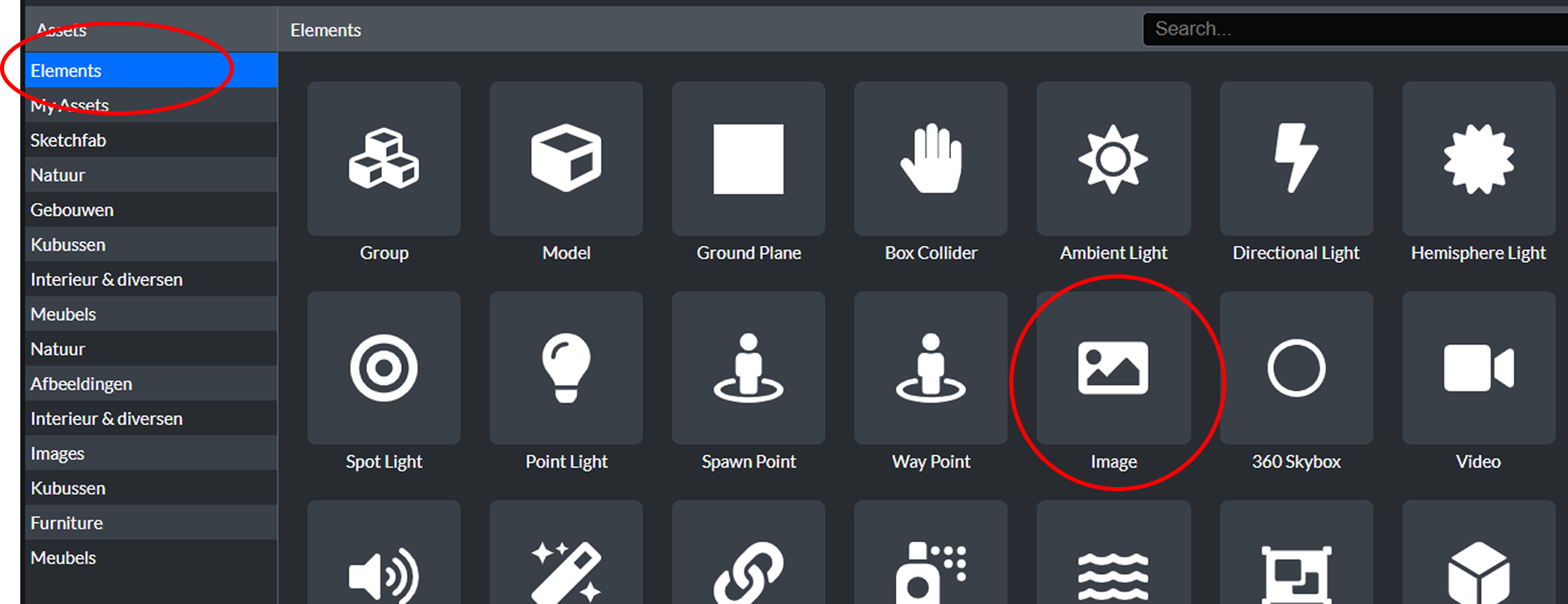 - In the 3D editor, go to 'Elements' and choose 'Image'
