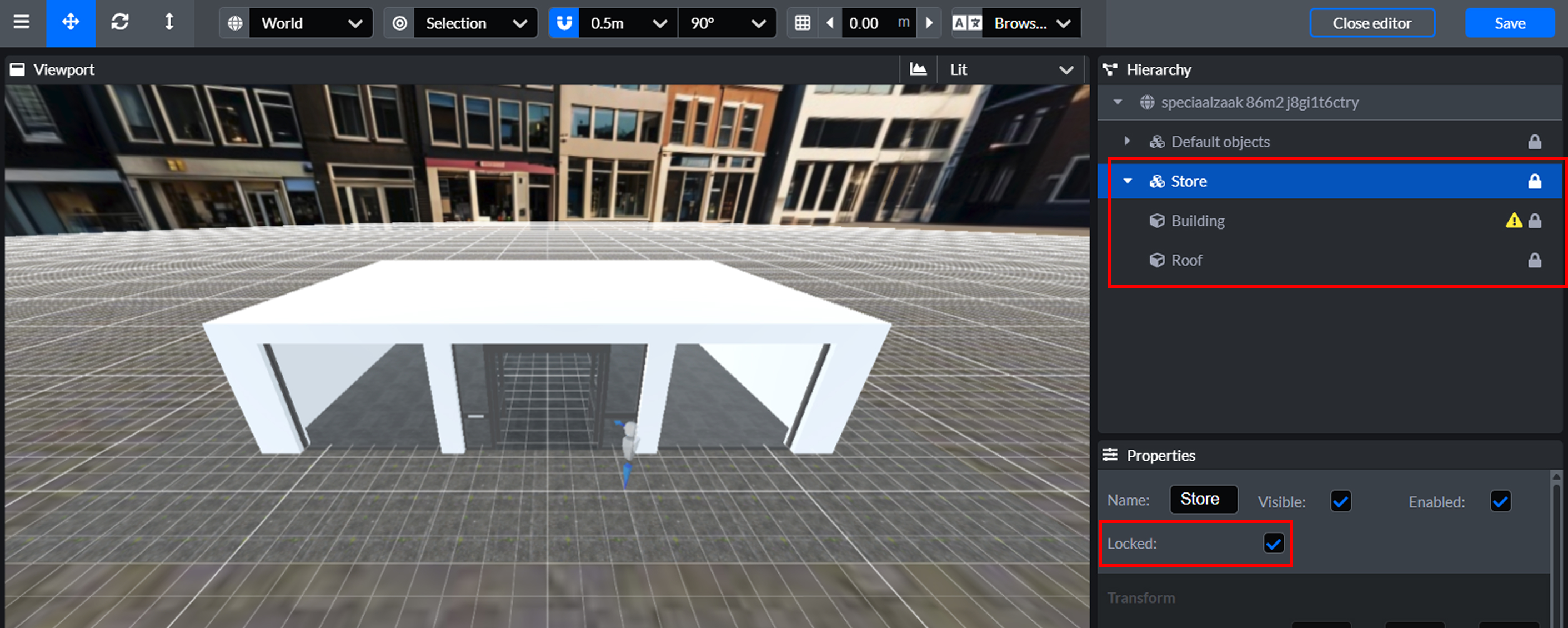 When you start with a standard template, your 3D design often contains a few basic components. Think for example of a skybox (this is the image around you), the ground, or a shop or building you want to furnish.