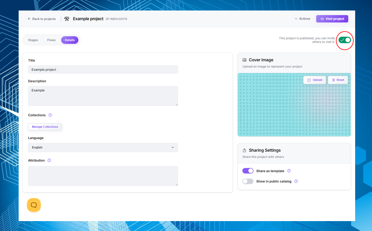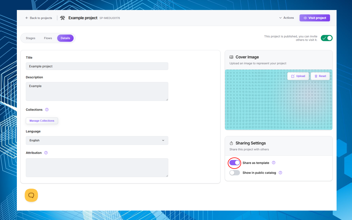 - Others can then immediately find your project as a standard template when they create a new project in the studio.